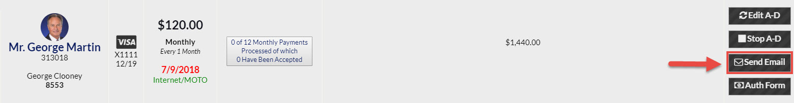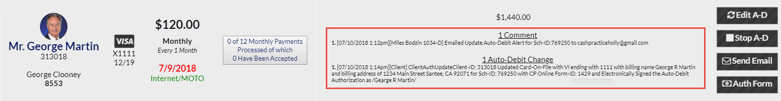 Example 2: The client calls your office because they have a new credit card they want to use for their monthly auto-debit payments.